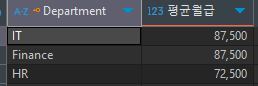 의문점) 기대결과와는 동일하게 나왔으나 IT, Finance의 평균월급은 동일하기에 '가장높은부서' IT, Finance로 두개일 것이다. 두개를 출력하려면 어떻게 해야할까? 제약사항에 있는 HAVING등을 사용하여 풀 수 있어야한다를 참고해보자