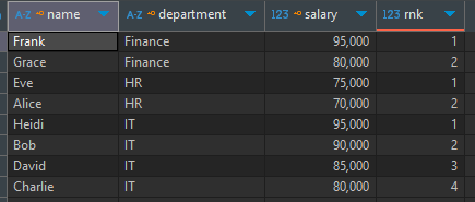 참고) rank 함수 Alias 지정할때 rank로 하면 이미 사용된 예약어로 출력안되는 현상 발생.해결 방법: rnk 또는 ranking 같은 다른 별칭 사용